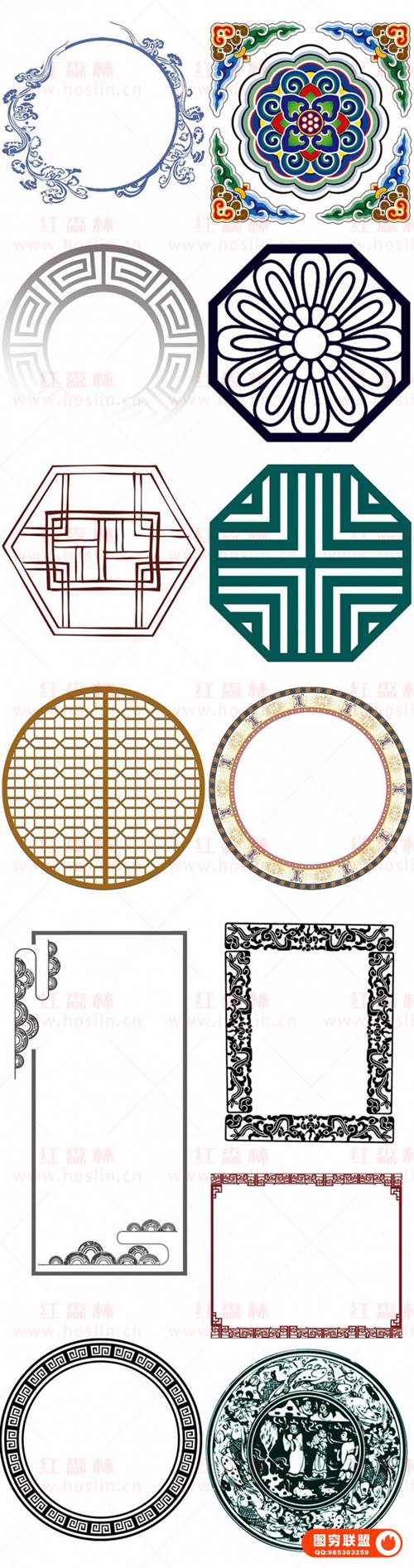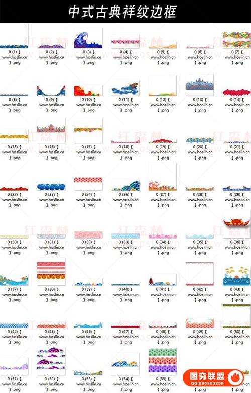 图穷联 » [图片素材]中国风古典古风传统中式花纹边框装饰底纹图案PNG免抠元素PSD素材