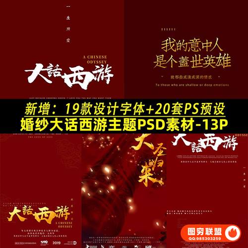 图穷联 » [PSD模板+字体预设]婚纱情侣大话西游PSD主题模板影楼古装创意设计PS素材+字体