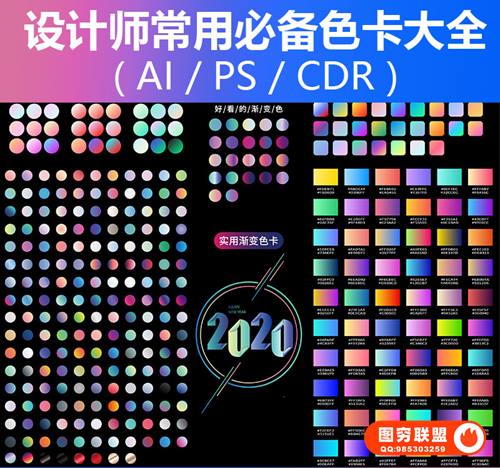 图穷联 » [PS色卡]设计师必备超实用色卡渐变色卡对比色卡AI电子版色卡PS渐变预设配色方案
