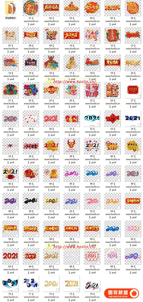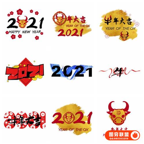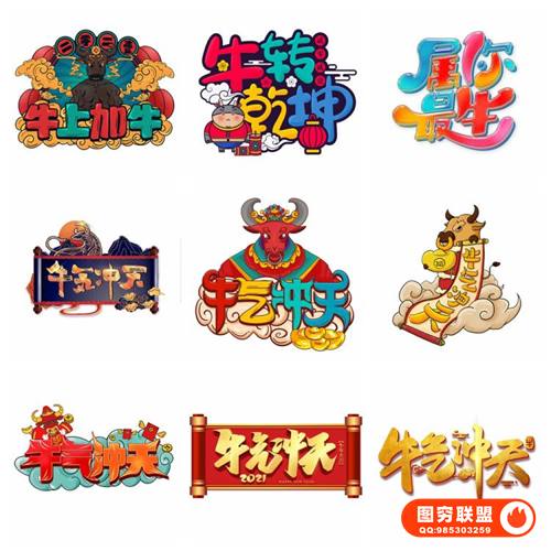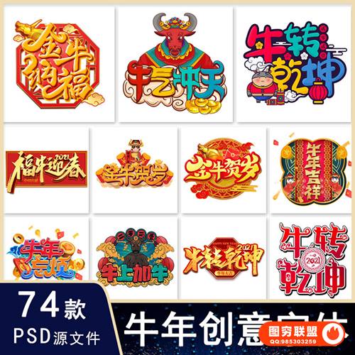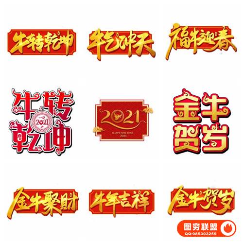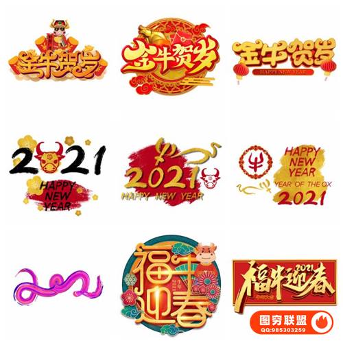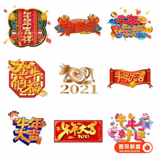图穷联 » [PSD模板]74款卡通喜庆创意2021手绘牛年新年春节节日插画艺术字体免抠素材