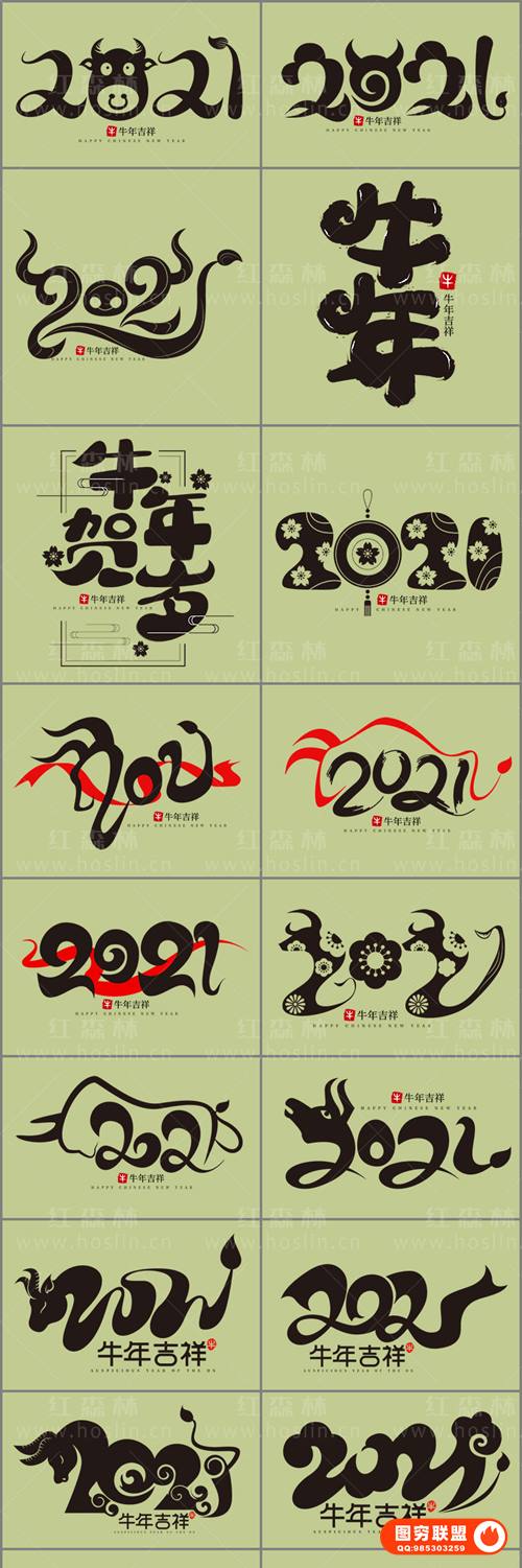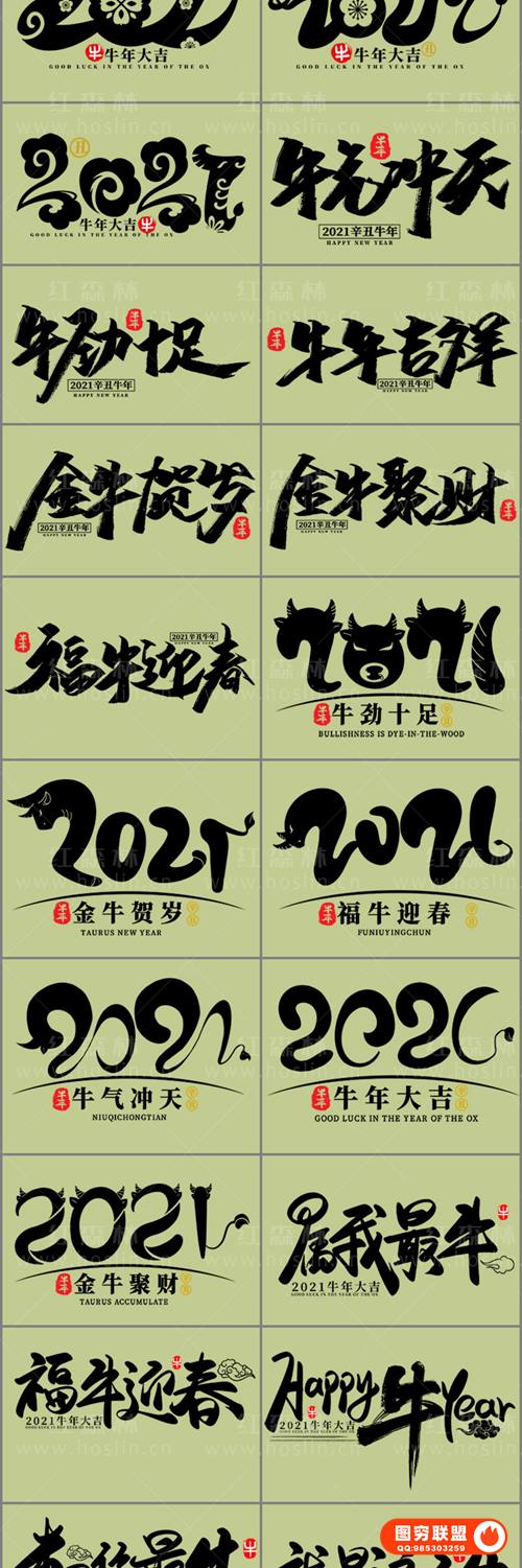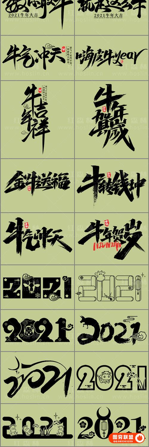 图穷联 » [图片素材]84款毛笔书法2021牛年贺岁金牛送福手写艺术新年春节字体设计素材