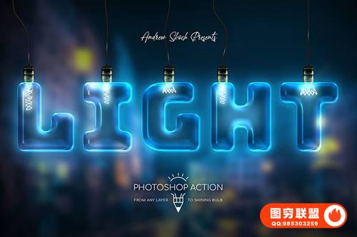 绚丽高品质的逼真震撼时尚灯泡霓虹灯效果photoshop动作预设,用文字或徽标制作酷炫的灯泡可 与文字,徽标,形状或任何层配合使用,为设计师提供精彩绝伦的灵感素材。一键操作,非常易于使用,快速行动!