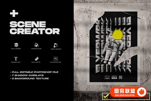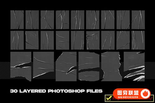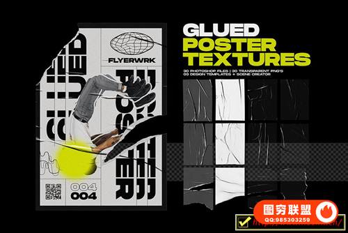 图穷联 » [图片素材]箔纸风格素材镭射铝箔跟海报褶皱样机和磨损划痕全息水滴叠加素材
