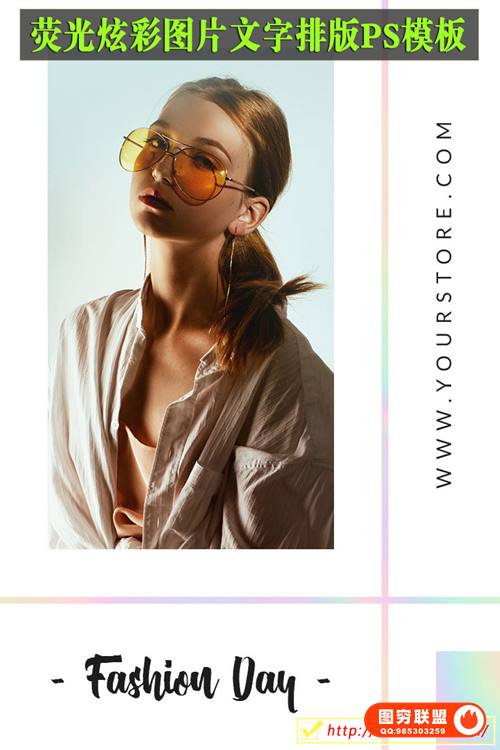图穷联 » [PSD模板]版式设计|时尚荧光炫彩图片排版PSD模板样机