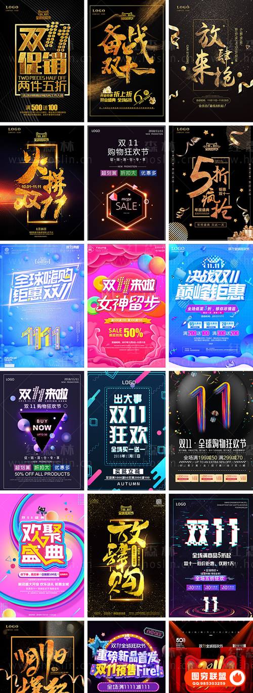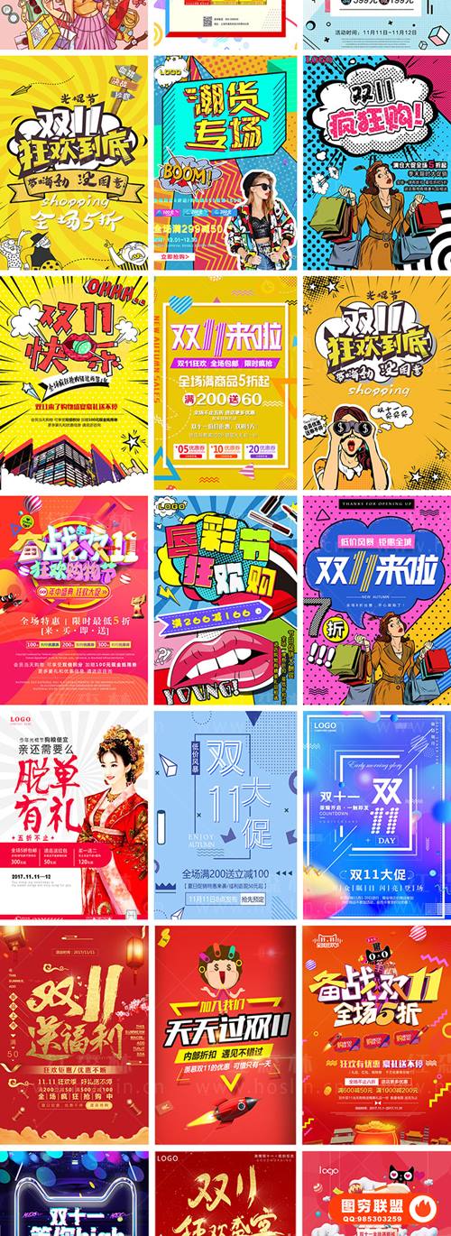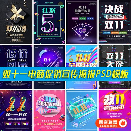 图穷联 » [PSD模板]228款双十一双11电商淘宝天猫京东促销打折宣传海报PSD模板设计素材