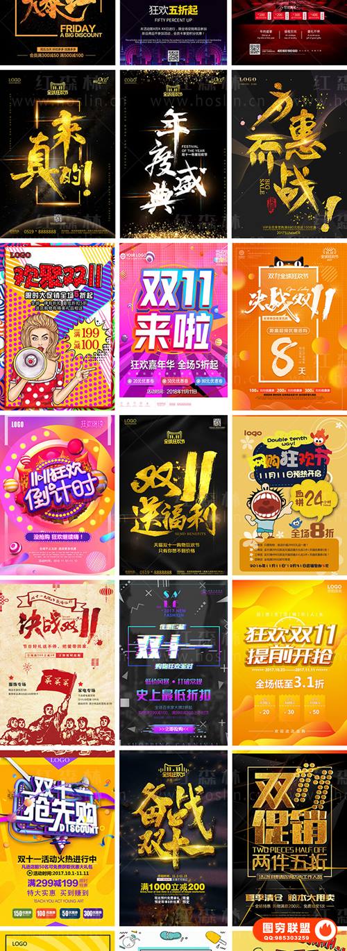 [PSD模板]228款双十一双11电商淘宝天猫京东促销打折宣传海报PSD模板设计素材