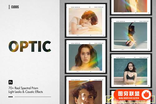 图穷联 » [图片素材]非常逼真的一组光学/棱镜/彩虹漏光光影效果PS叠层图片素材 OPTIC
