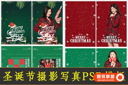 图穷联 » [PSD模板]圣诞节摄影写真PSD模板雪花彩球文字背景合成照片画册排版PS素材