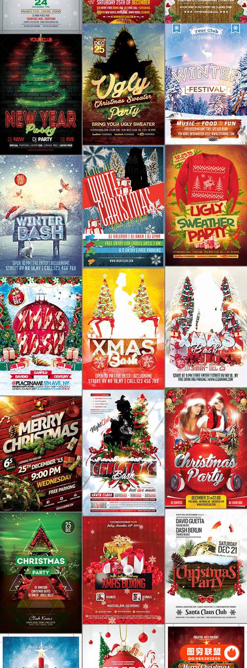 图穷联 » [PSD模板]2020创意圣诞节新年海报简洁商场活动促销背景宣传单PSD设计素材模板