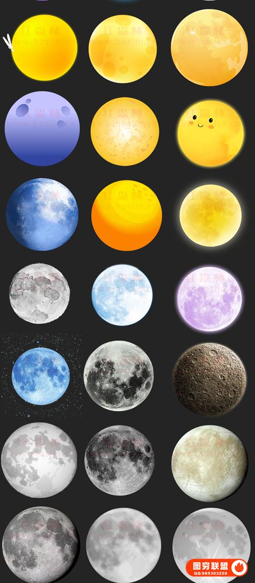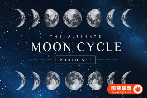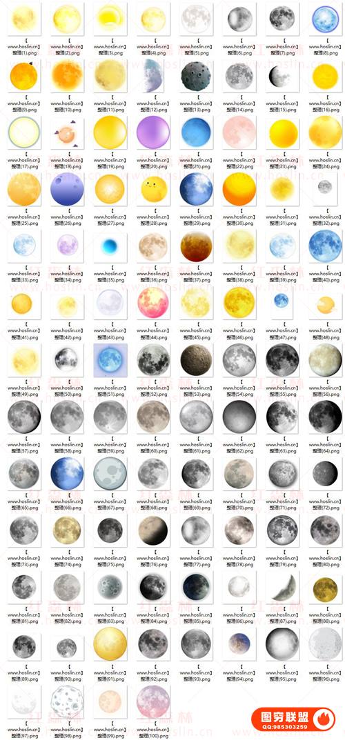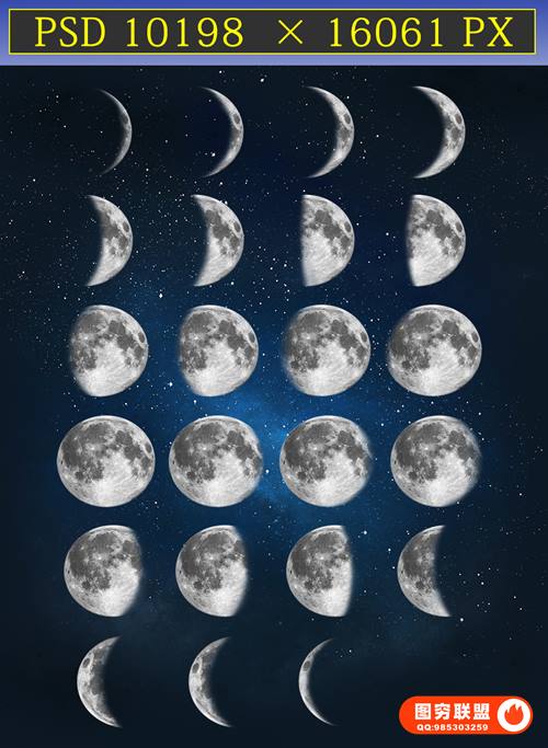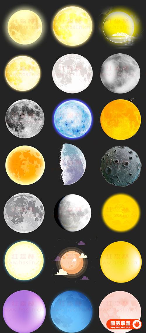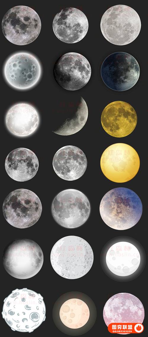 图穷联 » [图片素材]120款月亮月球圆月月相变化弯洁白月高清图片元素PNG免抠PS设计素材