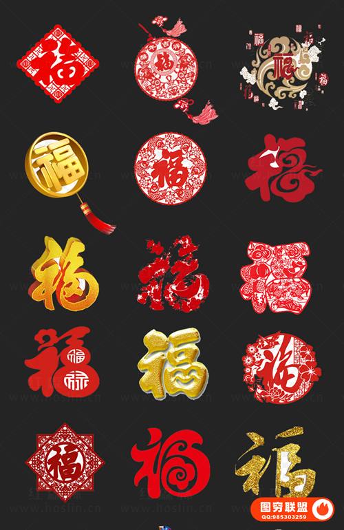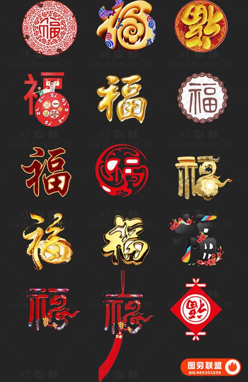 图穷联 » [图片素材]中国传统古典春节新年福字PNG图片字体艺术字PS设计素材