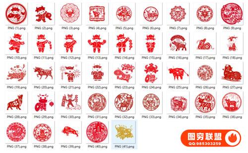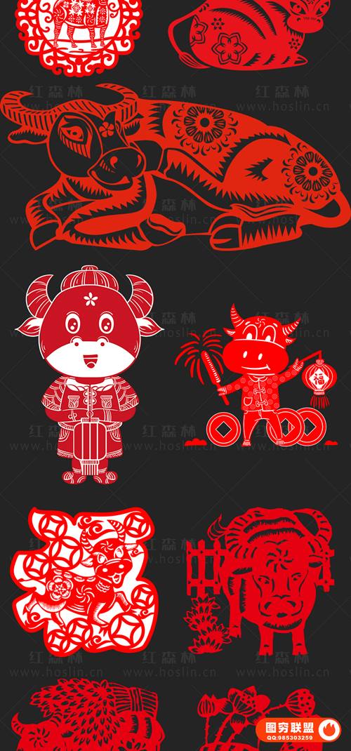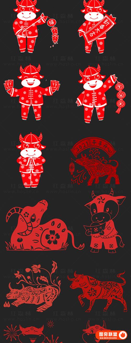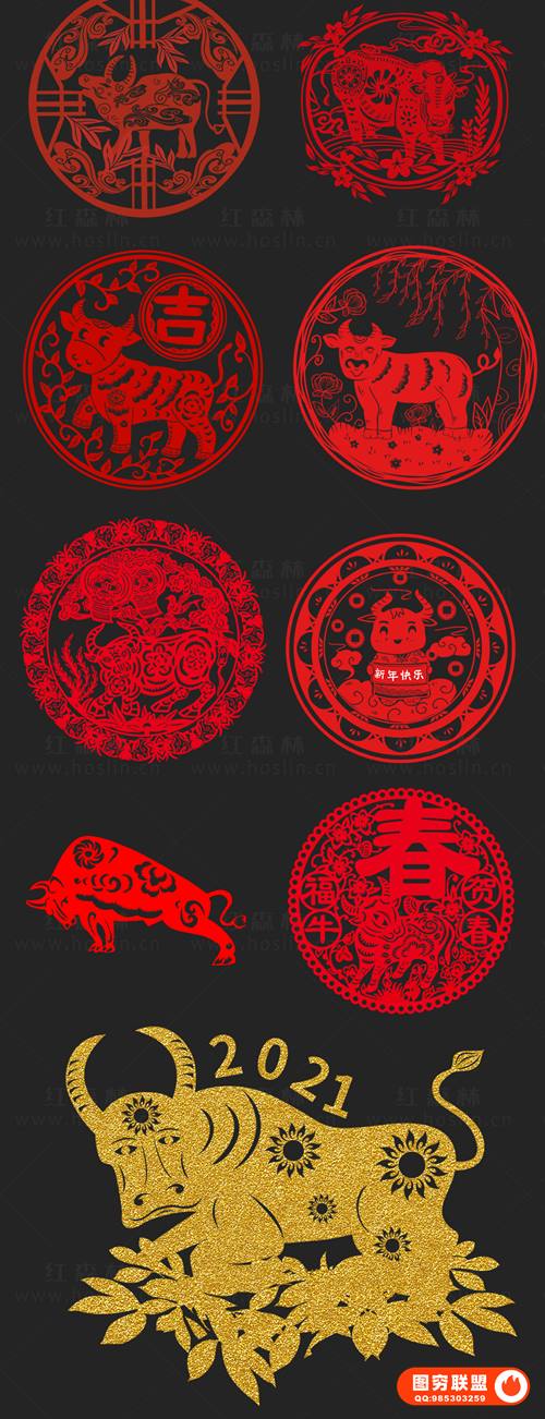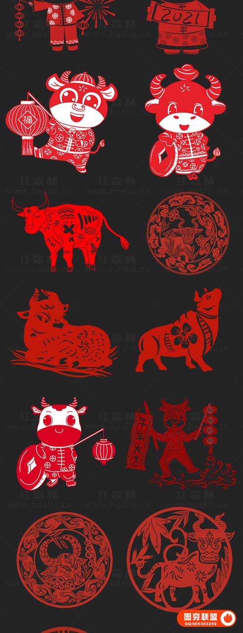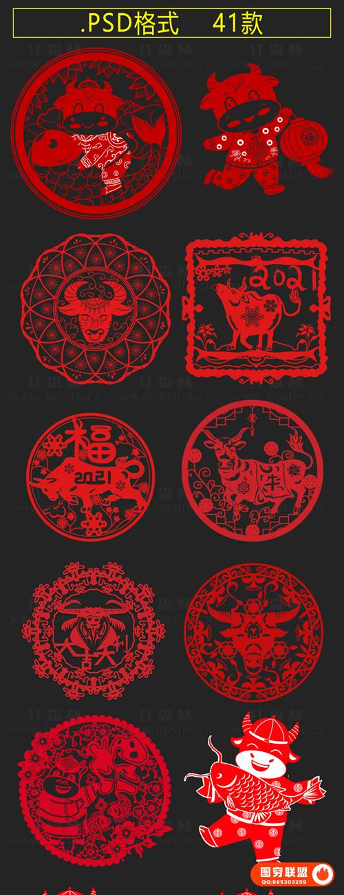 图穷联 » [图片素材]2021牛年剪纸红色新年春节喜庆插画PNG窗花AI矢量PSD模板PS素材