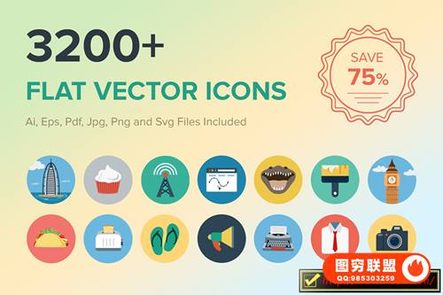图穷联 » [图标素材]3200+扁平化平面矢量图标设计素材合集(AI,EPS,PNG,JPG,