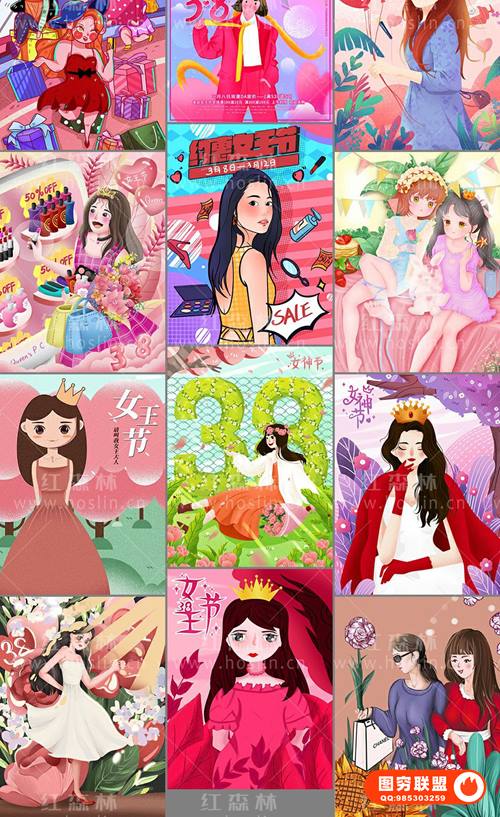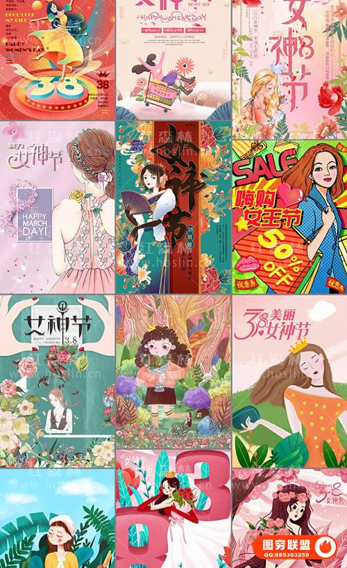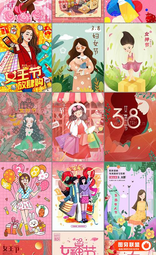 图穷联 » [PSD模板]56款38妇女节手绘插画海报模板三八女神女王节海报PS设计素材