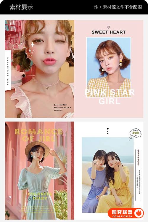 图穷联 » [PSD模板]排版丨ins可爱少女风摄影写真文字PSD模板,素材文字直接替换