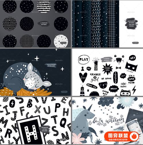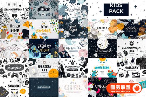 图穷联 » [矢量素材]2850种儿童服装房间装饰游乐场各种卡通插画图形矢量元素大合集 2850