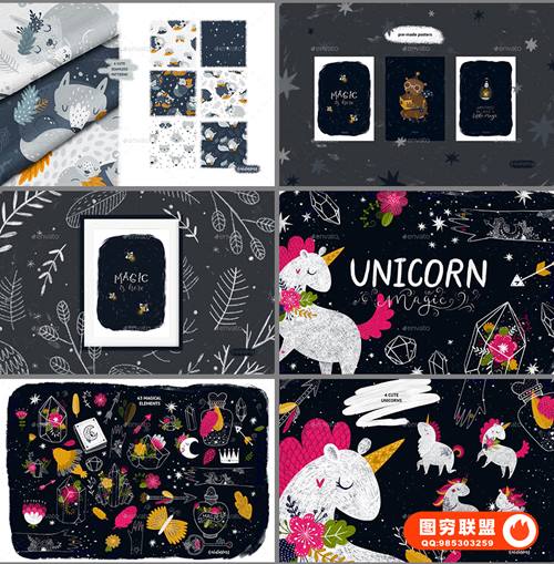这个素材包中包含高达2850多种图形元素。可爱的动物,花朵,人物,魔术元素,版画,文字,图案,可打印的艺术品以及更多儿童用品!