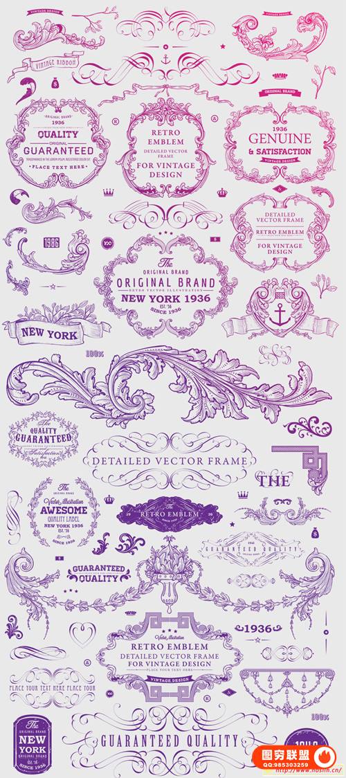 图穷联 » [矢量素材]600多个复古框架和LOGO标志花纹矢量素材合集