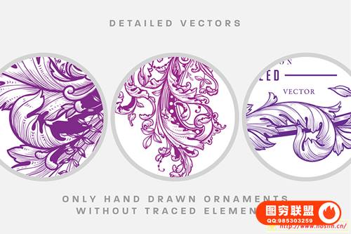 这是一组庞大的复古元素集合。框架,标签,边框,花卉,标志和其他矢量元素可方便地应用到您的设计中。所有元素都是在程序中手工绘制的,不包含自动跟踪(仅清除手绘向量)。高分辨率细节允许您根据需要更改比例。