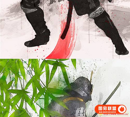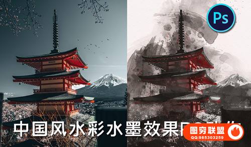 图穷联 » [PS动作]PS特效动作一键生成手绘水墨水彩画效果中国风照片 Asian Water