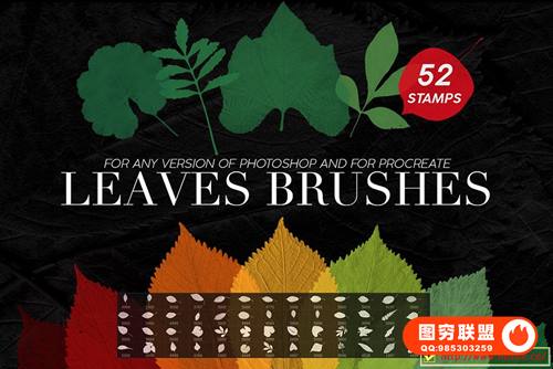 图穷联 » [PS笔刷]52支高分辨率新鲜树叶形状PS笔刷 52 Leaves photosho