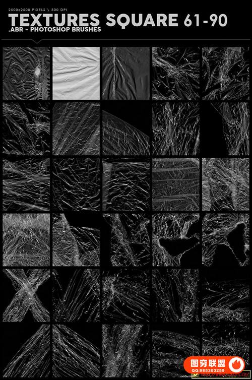 关于产品:198支用于Photoshop CS2-CS3- CS4-CS5-CS5-CS6-CC或更高版本的不同塑料保鲜膜效果笔刷,由大量的保鲜膜形状和纹理组成,用于Photoshop笔刷。由真正的塑料材料制成-塑料袋,保鲜膜,虚线包装等。