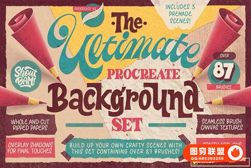 [Procreate笔刷]87套Procreate复古怀旧纸张撕纸插图纹理背景画笔 The Ultimate Procreate Background Set