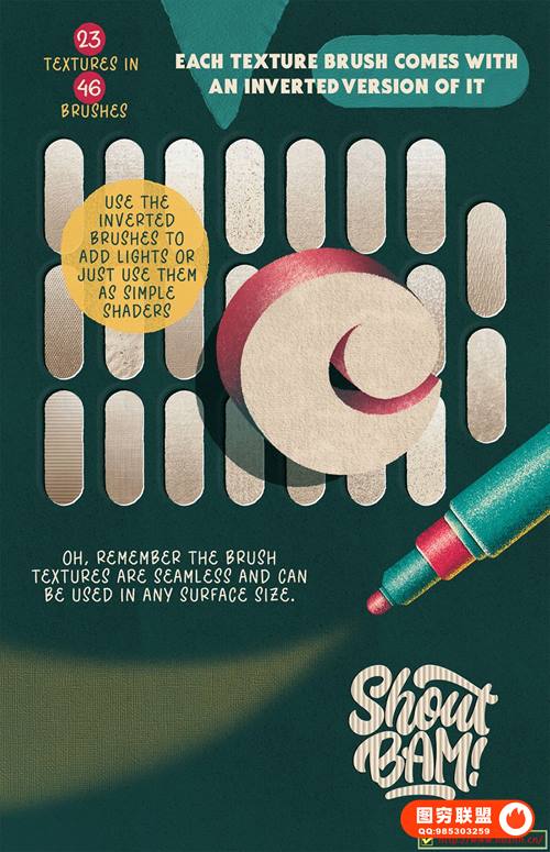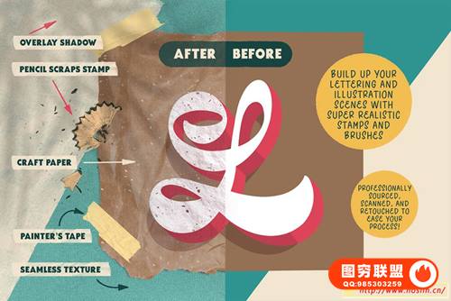 这套工具包含超过87种画笔,可让您使用超逼真的图章和画笔来构建您的刻字和插图场景。它们经过专业来源,扫描和修饰,以简化您的过程。包含适合所有绘画风格的无缝帆布刷。您将能够以任何所需的表面大小和任何颜色使用纹理。