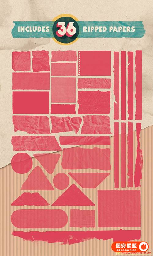 图穷联 » [Procreate笔刷]87套Procreate复古怀旧纸张撕纸插图纹理背景画笔