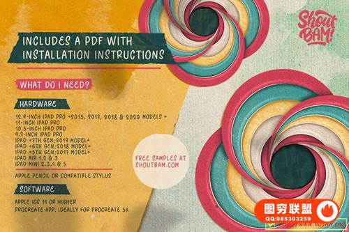 支持软件:Procreate,不支持PS,非PS笔刷!