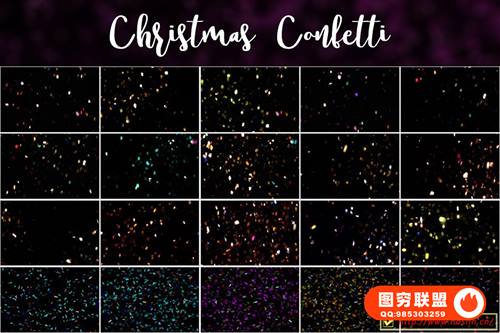 图穷联 » [图片素材]42张色彩缤纷的圣诞节五彩纸屑和闪光覆盖效果图片素材+PS动作 Conf