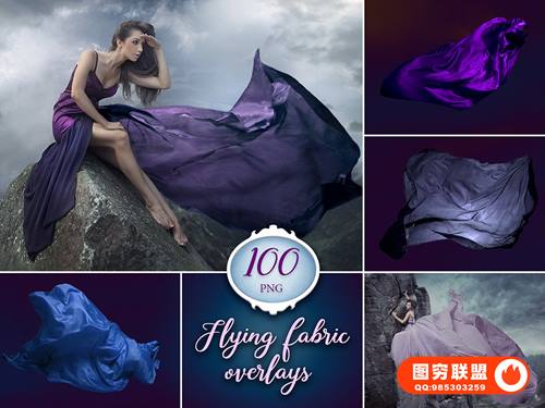 [图片素材]100款5K影楼婚纱大片裙摆拖尾丝绸飘动飘纱合成PNG素材 100 Flying Fabric Photo Overlays