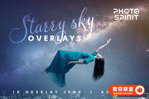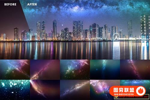 图穷联 » [图片素材]10张高质量夜空星空银河星河叠加图片素材+PS动作 Starry Sky
