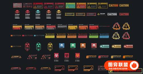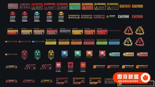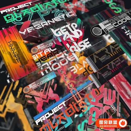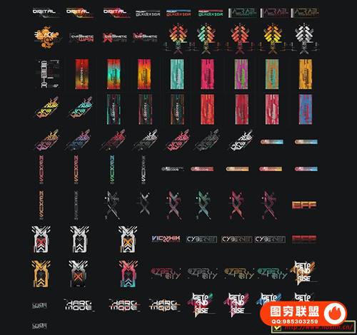 图穷联 » [图片素材]360组赛博朋克未来派数码科技风格文字图形贴花贴纸PNG元素包 360+