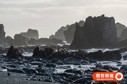 图穷联 » [图片素材]110+新西兰南岛朦胧日落海浪海鸥海岸岩层高清参考图片合集