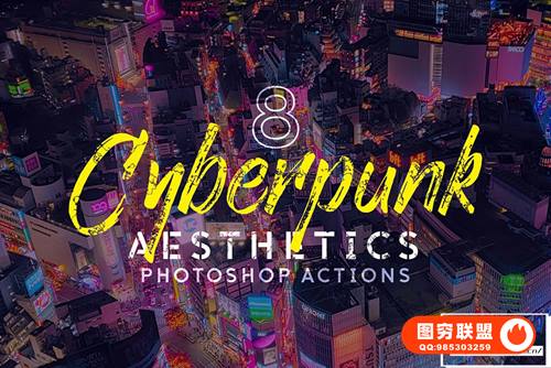 [调色预设/PS动作]8款夜间城市景观赛博朋克视频调色LUT预设与Ps动作 Cyberpunk Photoshop Actions