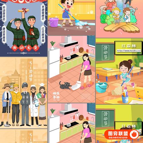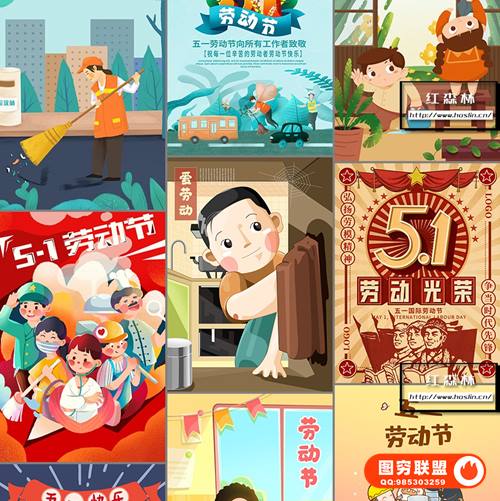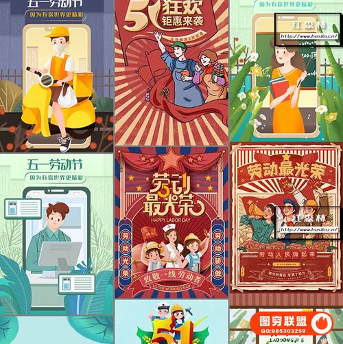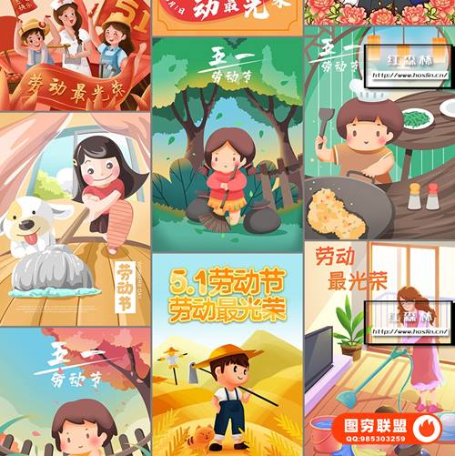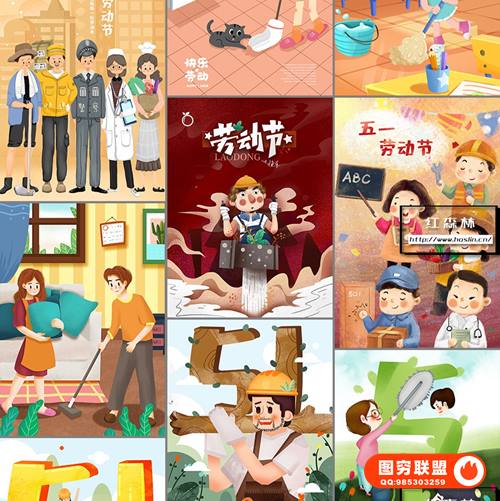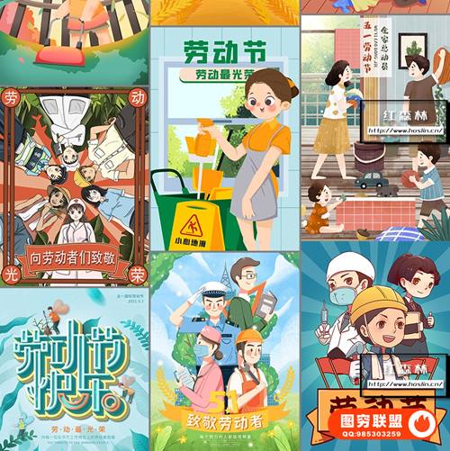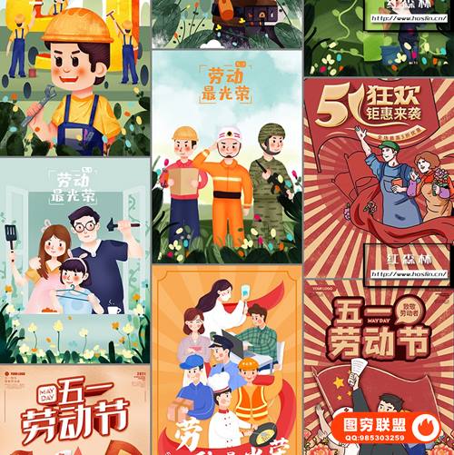 图穷联 » [PSD模板]50款五一国际劳动节小清新手绘插画海报PSD模板