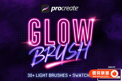 图穷联 » [Procreate笔刷]30组Procreate赛博朋克霓虹文本发光画笔笔刷 30