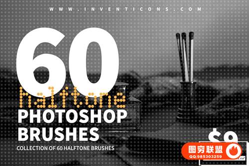 [PS笔刷]60款半色调效果PS笔刷 halftone photoshop brushes