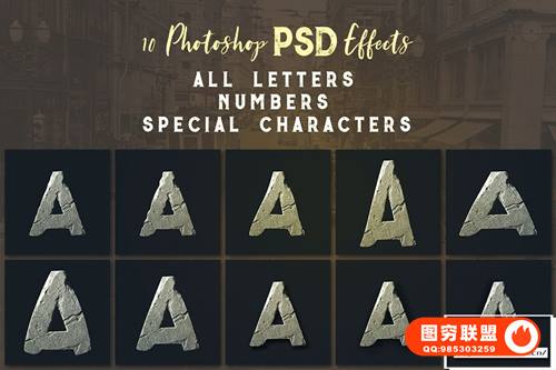 具有这些字母的10种效果的分层Photoshop PSD文件-具有智能对象