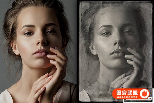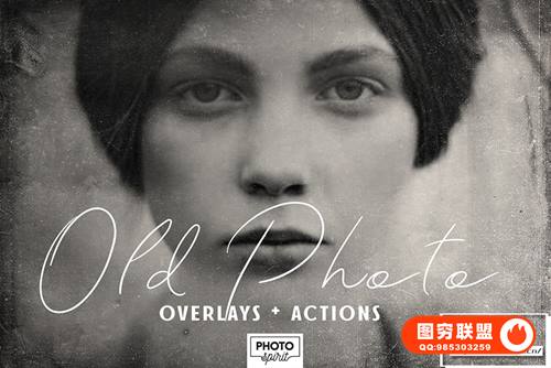 图穷联 » [图片素材]48张复古老照片灰尘划痕叠加素材+PS动作 Old Photo Effe