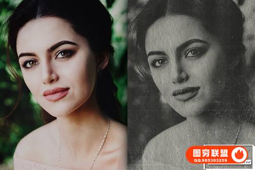 只需想象一下,只需单击两次即可将任何照片转换为旧专辑的复古风格。您还可以使用制作此效果的PS动作,您将获得经过微调的色彩校正,它肯定带有旧的黑白照片的阴影和两组纹理,以模拟照片表面的复古纸和划痕。
