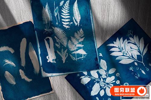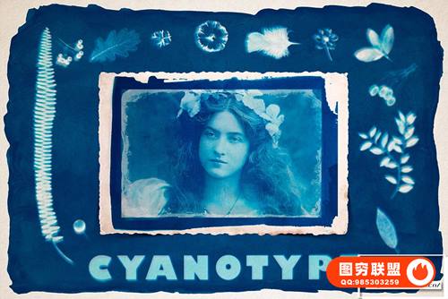 图穷联 » [PSD模板]照片制作古典摄影蓝晒印相效果PS模板 CYANOTYPE Digita