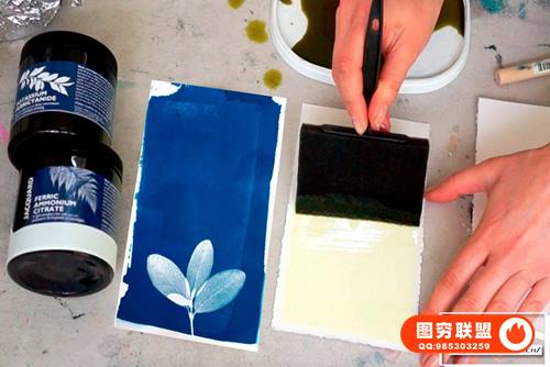 Cyanotype – 蓝晒印相工艺,该工艺也被称为蓝晒法,是一种大家比较熟悉的古典摄影工艺。制作蓝晒印相只需要两种化学药品:柠檬酸铁铵和铁氰化钾。两种化学药水按比例配制之后,涂布在纸张或者其它介质上,借助阳光中的紫外线进行曝光,之后使用清水冲洗即可完成定影。很多初学者都把它当作第一种进行练习的古典摄影工艺。