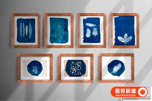 [PSD模板]照片制作古典摄影蓝晒印相效果PS模板 CYANOTYPE Digita