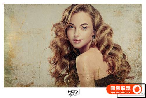 图穷联 » [PSD模板]照片添加金色纹理光泽艺术效果PS模板 Golden Patina Ph