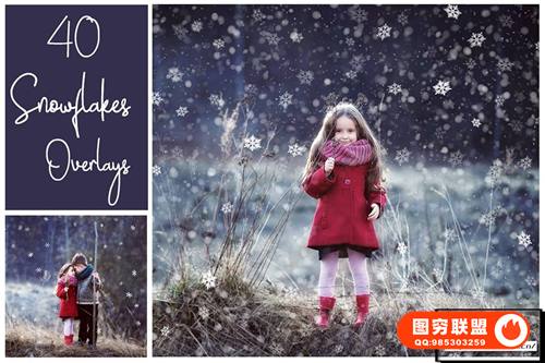 [图片素材]40张高清梦幻雪花下雪效果PNG图片素材 40 Dreamy Snowflakes PNG Overlays