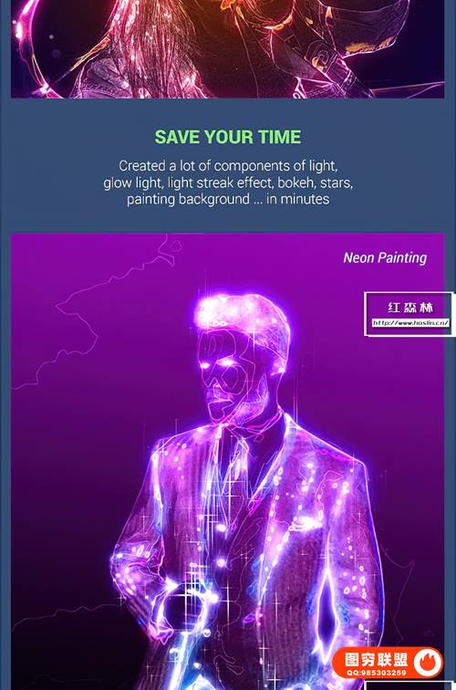 图穷联 » [PS动作]抽象霓虹灯发光光绘照片特效PS动作 Light Painting
