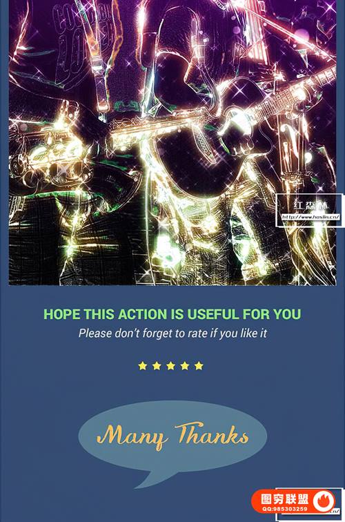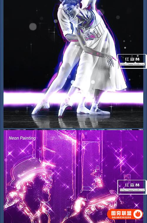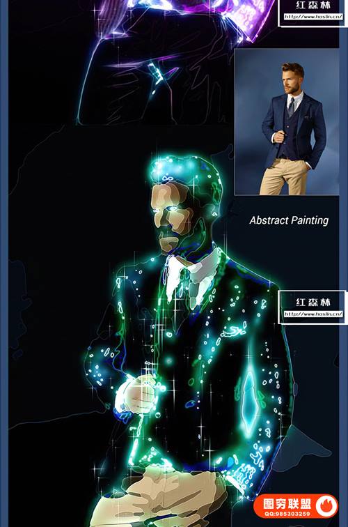 此PS动作将创建具有多种效果的现代艺术,例如霓虹灯 和发光、散景和星星……结合抽象绘画、普通绘画、原始照片等背景图像。