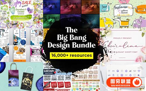 [图片素材]16000+商业设计贴图插画矢量图形标志艺术元素合集包 The Big Bang Design Bundle (16000+ iTems)